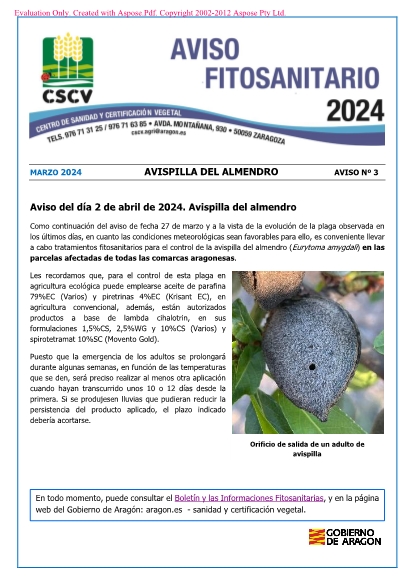 Avisos Insectos Fitosanitarios de síntesis Almendro