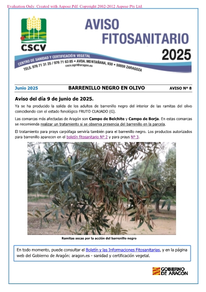 Avisos - Barrenillo negro del olivo