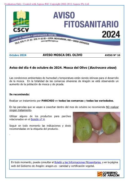 Avisos Insectos Fitosanitarios de síntesis Olivo