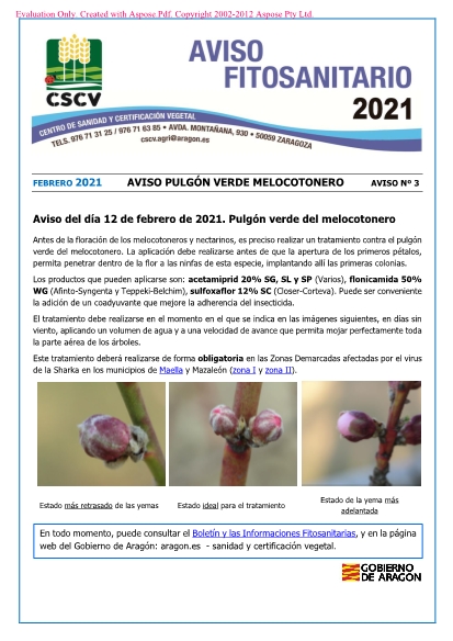 Avisos Insectos Fitosanitarios de síntesis Melocotonero