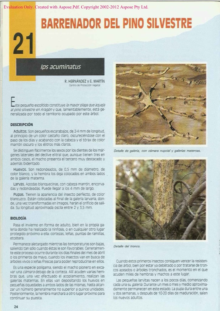 Ips acuminatus. Descripción, biología, daños y medios de defensa.