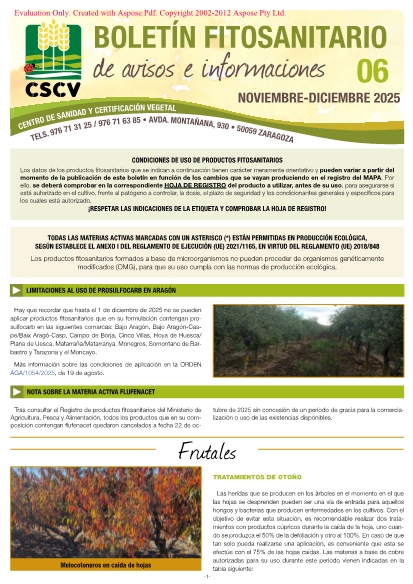Boletín fitosanitario de avisos e informaciones. Noviembre - Diciembre 2025