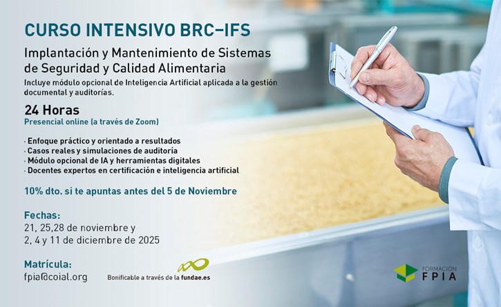 Curso intensivo que proporcionar a los profesionales del sector agroalimentario los conocimientos técnicos, prácticos y estratégicos necesarios para implantar, mantener y auditar con éxito sistemas basados en las normas BRC e IFS.