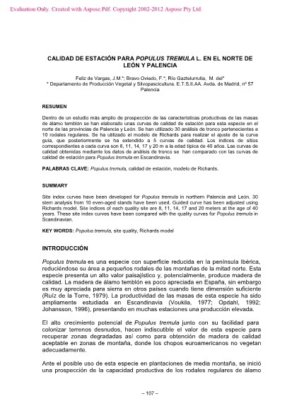 Autores: Feliz de Vargas, J.M.; Bravo Oviedo, F.; Río Gaztelurrutia, M.