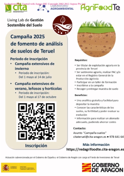 A través de esta campaña el Centro de Innovación en Bioeconomía Rural de Teruel (CITAte) pretende fomentar que el sector agrario conozca mejor sus suelos, facilitando la realización de una muestra gratuita de suelo en el Laboratorio Agroambiental del Gobierno de Aragón y formación sobre análisis y manejo de suelos.