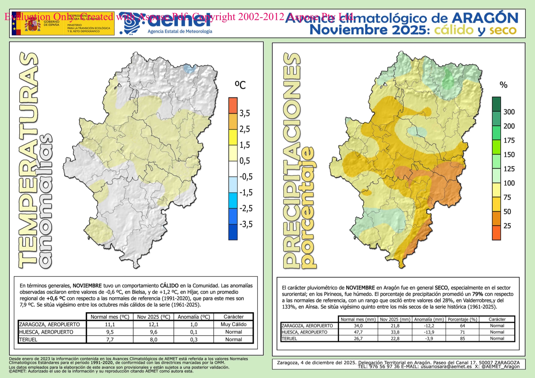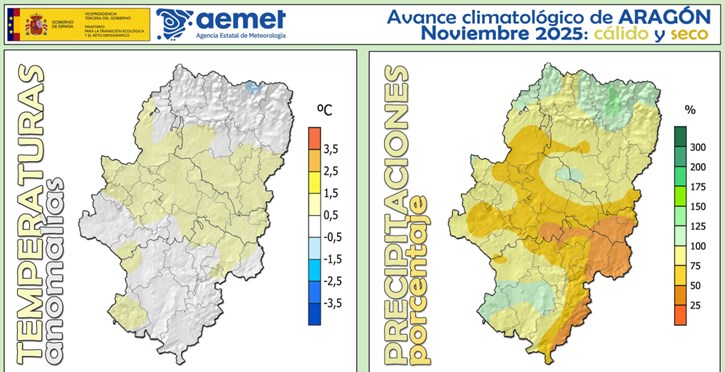 Climatología en Aragón. Noviembre 2025