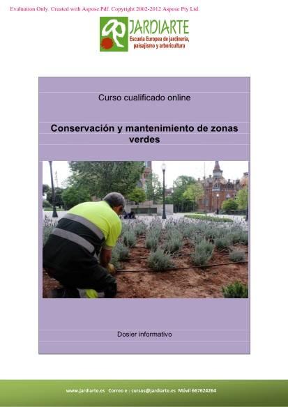 El mantenimiento de zonas verdes, además de importantes recursos humanos y económicos, requiere conocimientos tanto para su ejecución como para su organización, Con este curso JARDIARTE pretender formar técnicos capaces de organizar y planificar el mantenimiento de parques y jardines, mediante el conocimiento de todos los aspectos, técnicos, labores y organizativos necesarios.