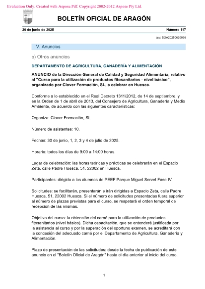 Formación Aparatos o maquinaria de aplicación Fitosanitarios de síntesis