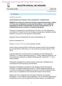 Lugar de celebración: las horas teóricas se realizarán en Centro Municipal de Formación, C1, polígono Mediavega, parcela C1, 50300, Calatayud (Zaragoza). Las horas prácticas se realizarán en polígono Mediavega UE1, parcela ZV-1 - 1, de la misma localidad.