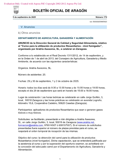 Solicitudes: se facilitarán, presentarán e irán dirigidas a Aratria Asesores, SL, en calle Jorge Guillén, 3, local, 50018 de Zaragoza www.aratria.net [email protected]
