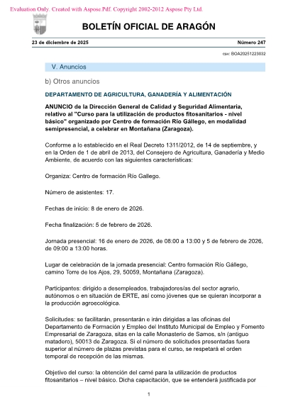 Formación Aparatos o maquinaria de aplicación Fitosanitarios de síntesis