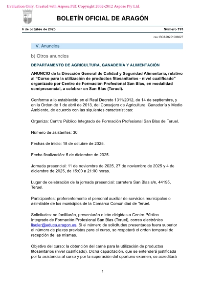 Formación Aparatos o maquinaria de aplicación Fitosanitarios de síntesis