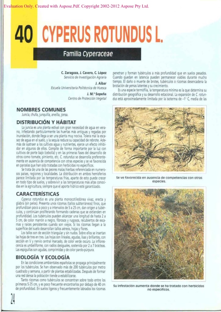 Cyperus rotundus. Distribución y hábitat, características, biología y ecología, control y otras medidas complementarias.
