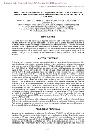 Publicación: 41 Jornadas de Estudio. XIV Jornadas sobre Producción Animal. AIDA. Zaragoza, España, 17 y 18 de mayo de 2011, pp. 577-579