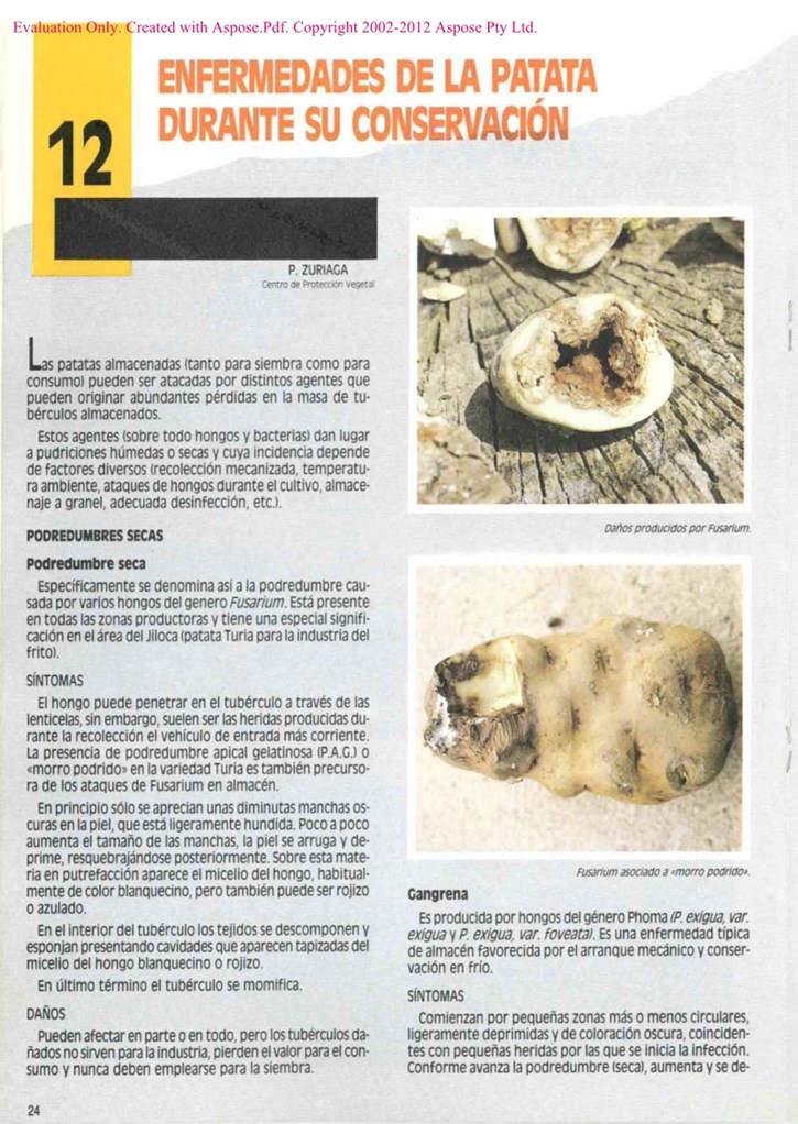 Las patatas almacenadas tanto para siembra como para consumo pueden ser atacadas por distintos agentes que pueden originar abundantes pérdidas en la masa de tubérculos almacenados.