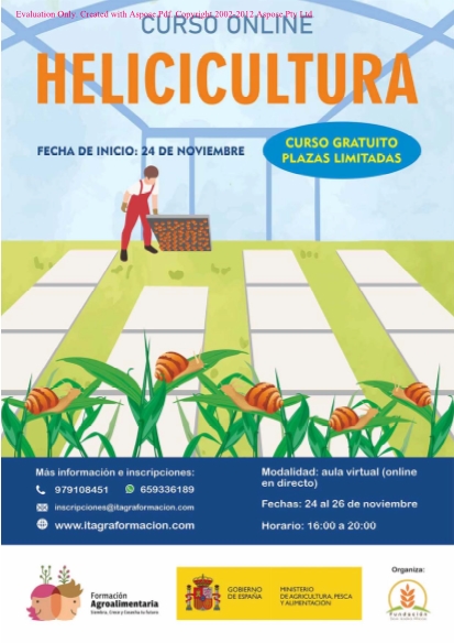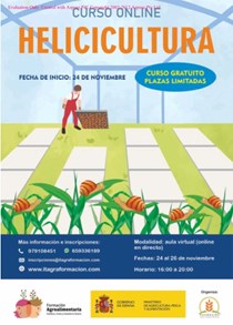 El objetivo de este curso es hacer una prospección de la helicicultura y las principales características del mercado del caracol incidiendo sobre características zootécnicas de los helícidos, sistemas de cría, patologías de los caracoles y prácticas correctas de higiene en la helicicultura.
