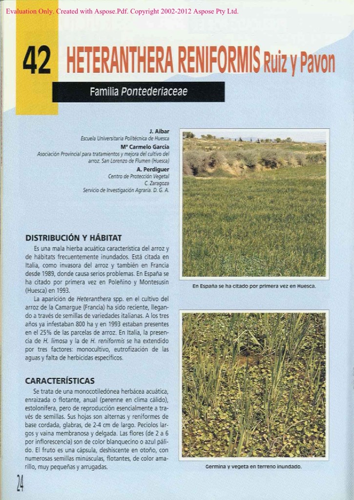 Malas hierbas Fitosanitarios de síntesis Procedimientos físicos Monocotiledónea de Verano Arroz Ficha técnica