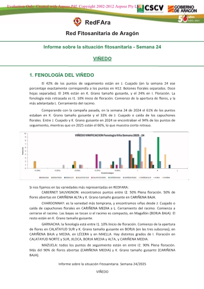 Informe semanal sobre la situación fitosanitaria de la Vid en Aragón. Semana 24/2025
