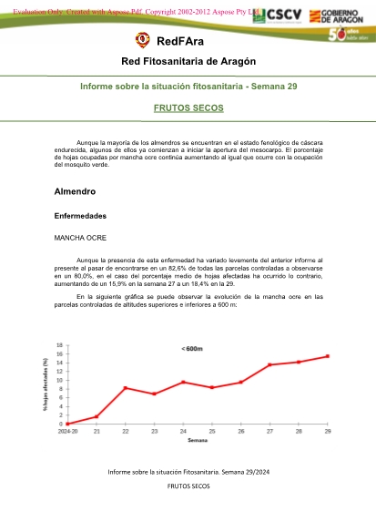 Informe semanal sobre la situación fitosanitaria de los Frutos Secos en Aragón. Semana 29/2024