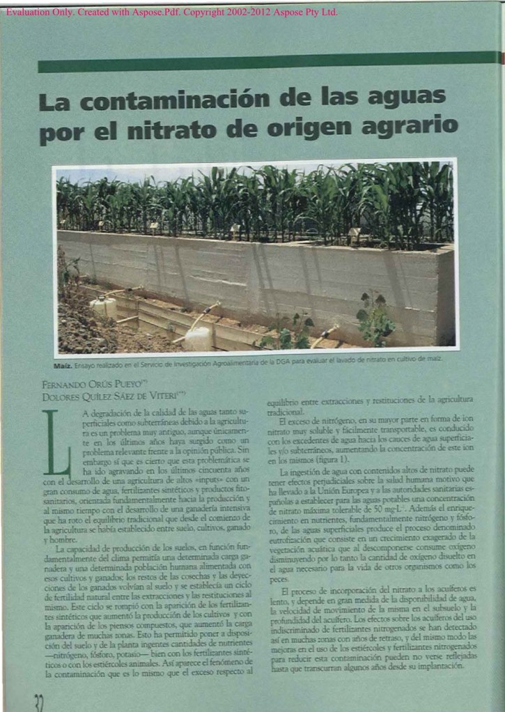 Normativa europea Normativa nacional Nitrógeno * Fertilización Artículo Contaminación