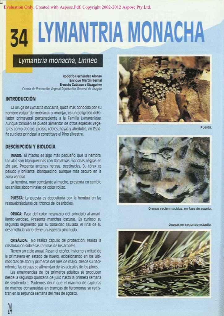 primaveral perteneciente a la Familia Lymantriidae. Aunque también se puede alimentar de otras especies vegetales como abetos, piceas, robles, hayas y abedules, en España su dieta principal la constituye el Pino silvestre.