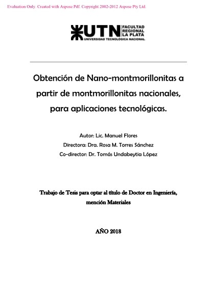 Publicación: Obtención de Nano-montmorillonitas a partir de montmorillonitas nacionales, para aplicaciones tecnológicas 1-224 (2018)
