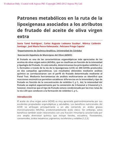 Patrones metabólicos en la ruta de la lipoxigenasa asociados a los atributos de frutado del aceite de oliva virgen extra