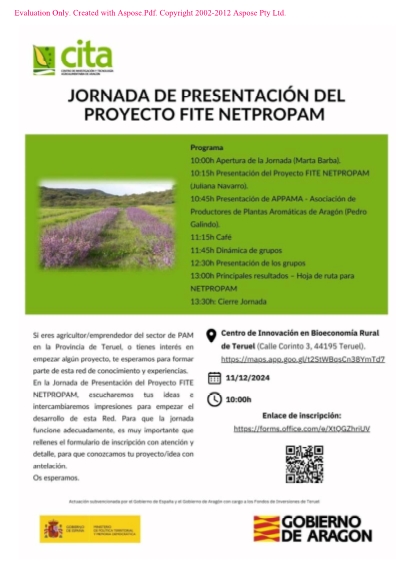 10:45 h - Presentación de APPAMA – Asociación de Productores de Plantas Aromáticas de Aragón