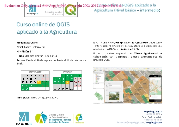 ejemplo trabajadores de comunidades de regantes, cooperativas, explotaciones agrícolas y ganaderas, agrupaciones de defensa vegetal, denominaciones de origen, empresas instaladoras de riego, compañías de aguas, asesores agrícolas, agricultores, topógrafos, servicios técnicos de la administración (dpto. de Agricultura, Medio Ambiente, Forestal, Agua, etc.) y a estudiantes que quieran consolidar sus conocimientos de SIG.