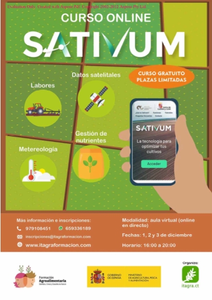 El objetivo del curso es dar a conocer algunas de las funciones de la nueva herramienta Sativum. Instruir en la gestión del acceso a datos sobre el suelo, el clima y el cultivo a escala de parcela, gracias a la disponibilidad de datos de diferentes redes de sensores, satélites de observación de la Tierra y bases de datos. Dotar de mayor destreza en la gestión de herramientas de apoyo en la toma de decisiones sobre el cultivo, basadas en datos y modelos agronómicos.