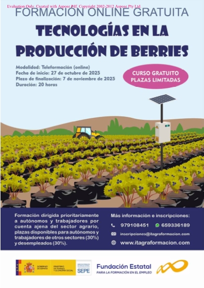 El objetivo de este curso es controlar, a nivel de experto, el uso de las tecnologías necesarias para el cultivo de berries, a través del conocimiento de las soluciones tecnológicas disponibles, del aprendizaje del trabajo en todos sus ámbitos, de la tecnología específica para su tipo de cultivo y de la concienciación de cómo afecta al medio ambiente y cómo contribuye a la sostenibilidad.