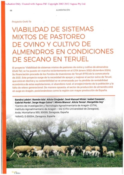 Viabilidad de sistemas mixtos de pastoreo de ovino y cultivo de almendros en condiciones de secano en Teruel